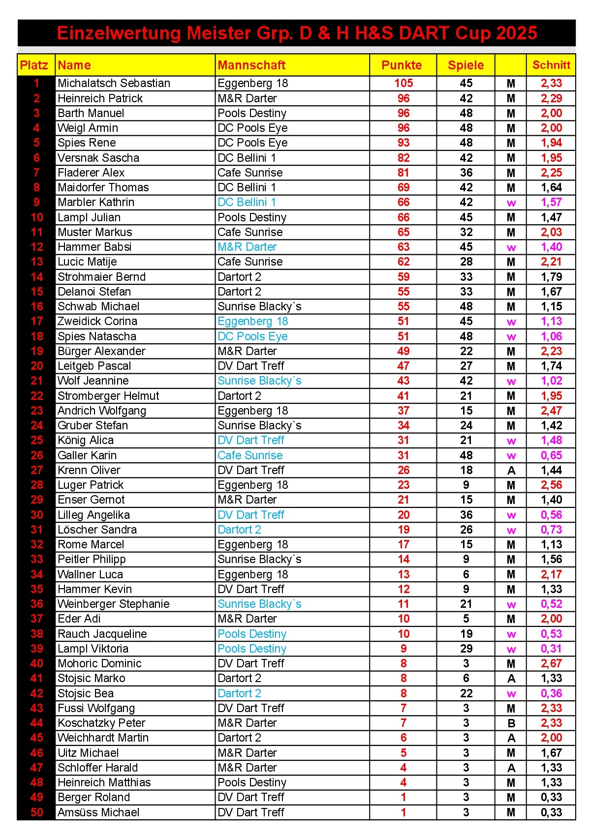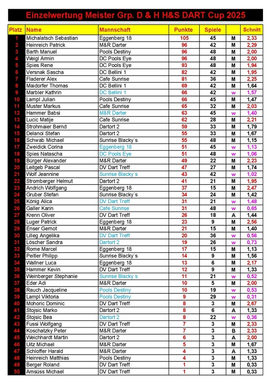 Einzelwertung H&S Dart