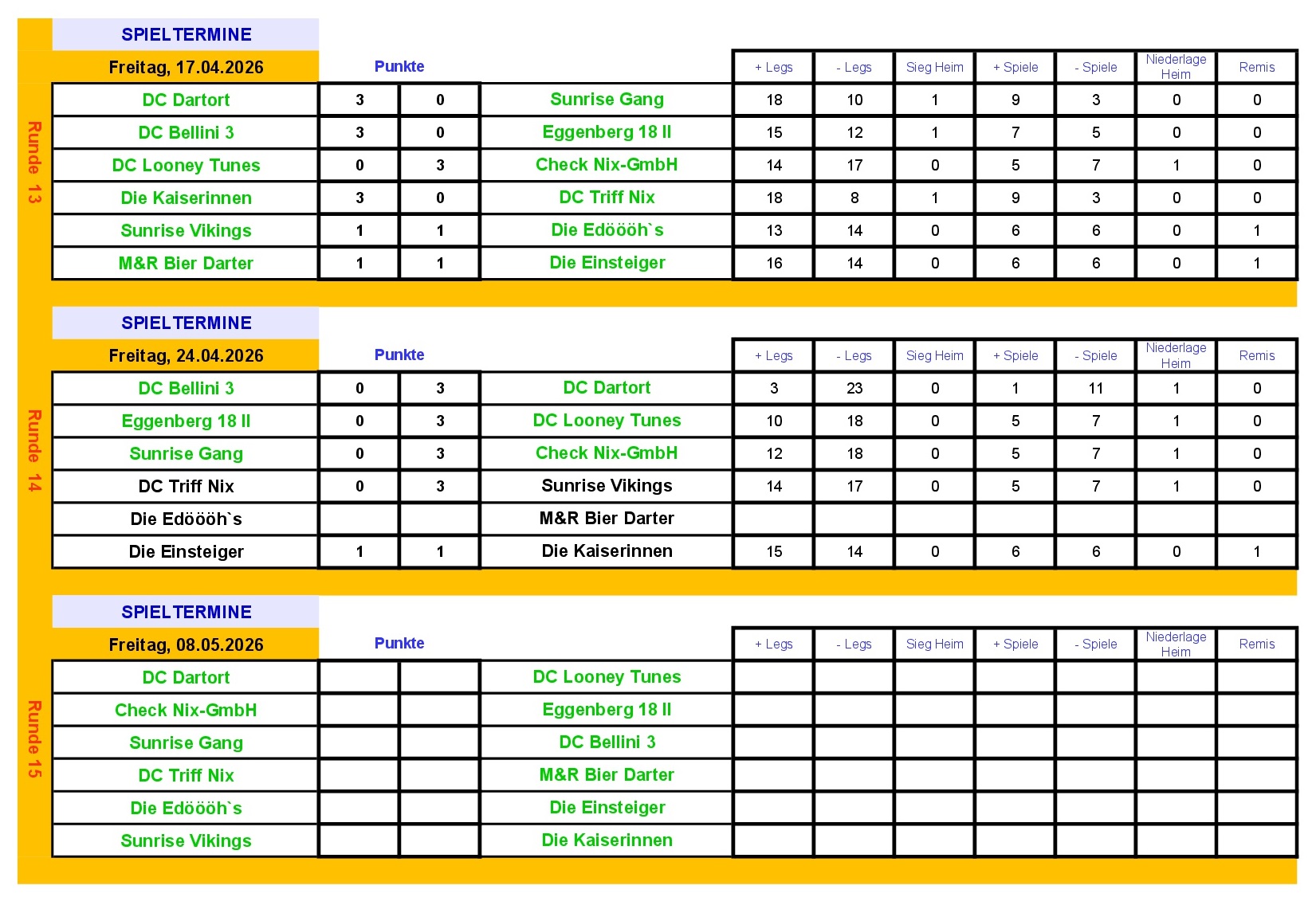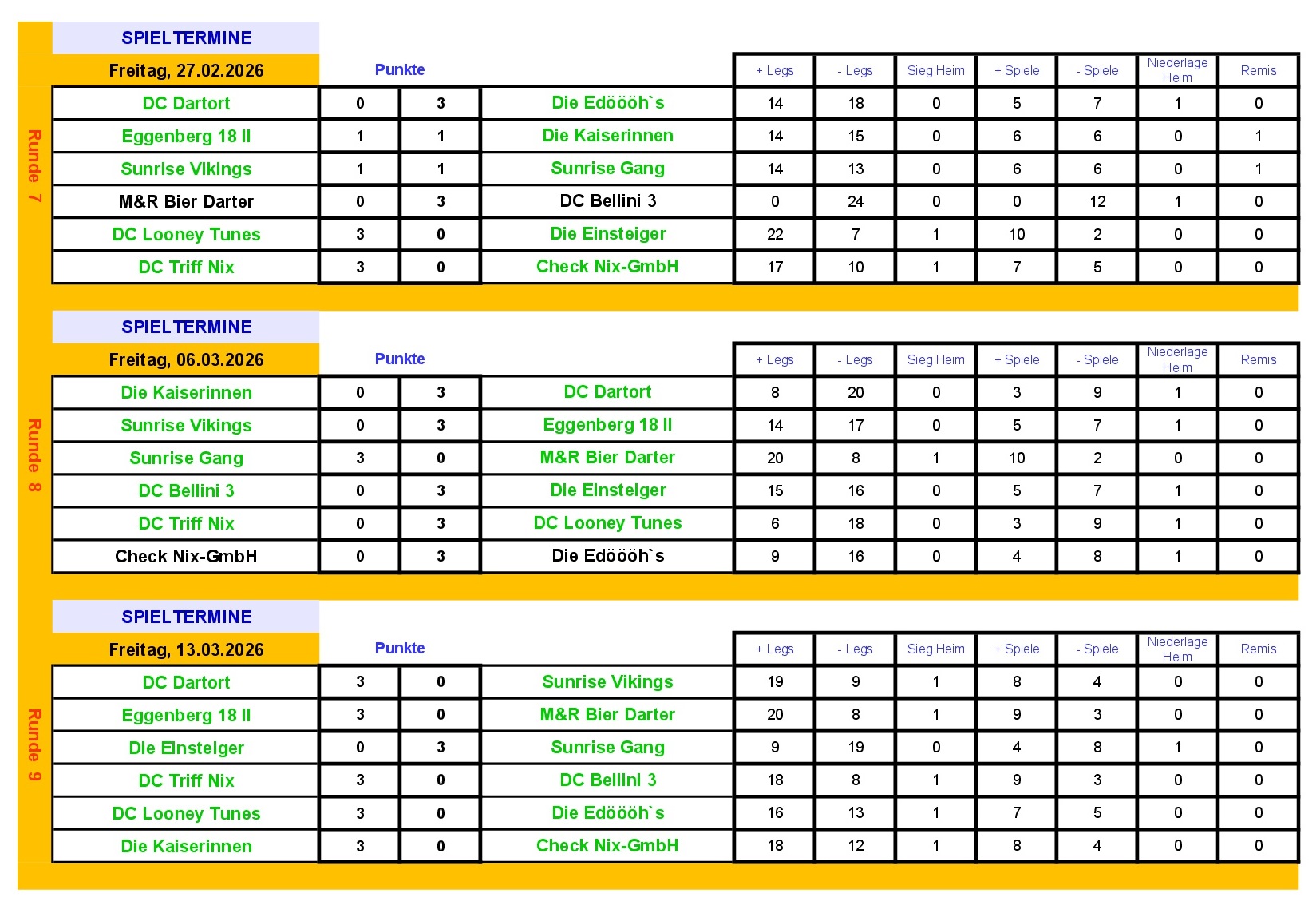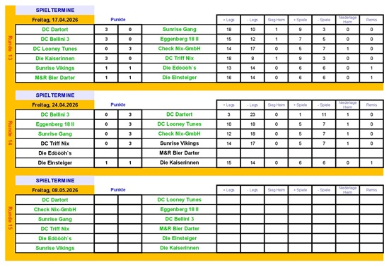 Die schwarz markierten Spiele bitte Tauschen