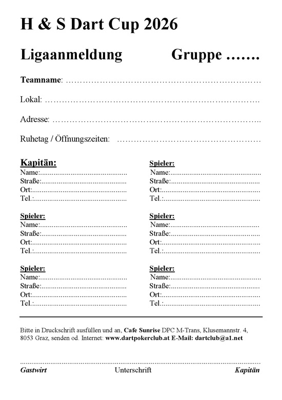 Beginn des H&S Dart Cup: Freitag 09. Jänner 2025